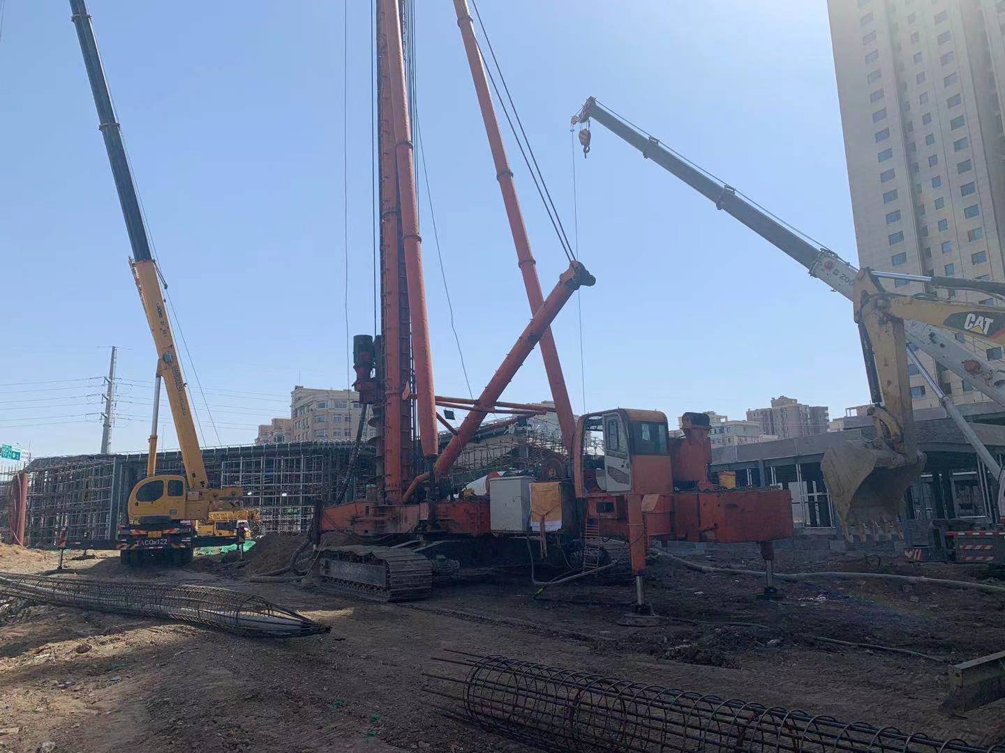 地下水文條件復(fù)雜,勘察期間場地地下水位歷史正常埋深為0.3-15.8m(場地內(nèi)局部已開挖接近坑底),由于電力隧道降水項(xiàng)目暫停,項(xiàng)目地下水位埋深13.6m,在基坑開挖和使用過程中本項(xiàng)目將采取降水措施。本項(xiàng)目基坑支護(hù)設(shè)計(jì)采用樁錨支護(hù)與放坡相結(jié)合的支護(hù)體系,豎向設(shè)置四排錨索。支護(hù)樁直徑為0.8m,間距1.4m,樁長為22m,錨索采用自成孔普通錨索。樁間及坡面設(shè)置鋼筋網(wǎng),并噴射強(qiáng)度為C20的混凝土面層,面層后80mm。本項(xiàng)目截止至2021年3月1日已完成降水系統(tǒng)施工,目前正在施工支護(hù)樁。