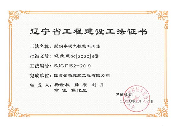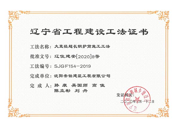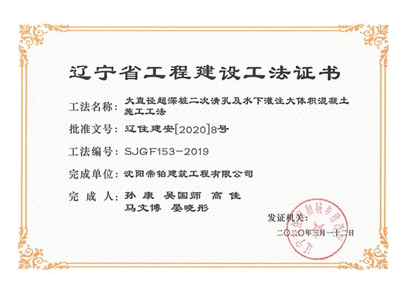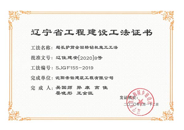 近日,由我公司技術(shù)團(tuán)隊(duì)撰寫的“超長(zhǎng)護(hù)筒全回轉(zhuǎn)鉆機(jī)施工工法”、“大直徑超深樁二次清孔及水下灌注大體積混凝土施工工法”、“大直徑超長(zhǎng)鋼護(hù)筒施工工法”、“型鋼水泥土樁施工工法”4項(xiàng)施工工法被確認(rèn)為遼寧省工程建設(shè)工法,企業(yè)科技創(chuàng)新再創(chuàng)佳績(jī)!