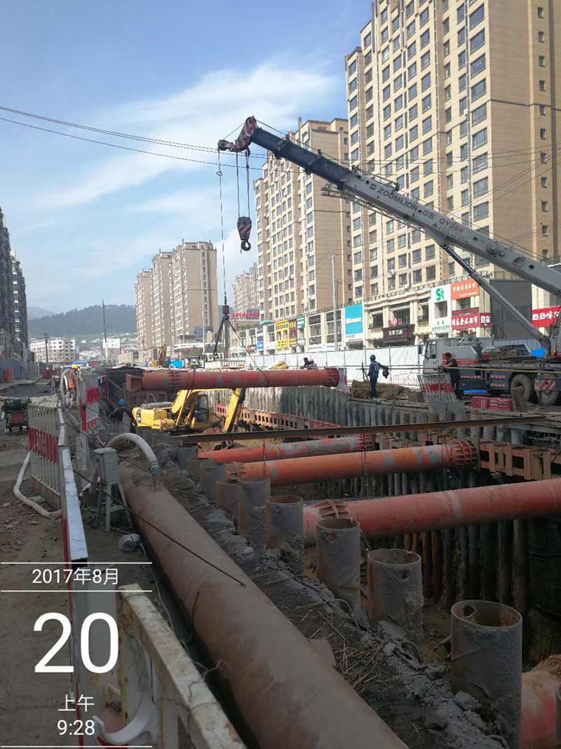 新華大街管廊基坑支護(hù)方案由我單位負(fù)責(zé)編制及施工,最終方案定位φ273*7鋼管樁+φ609*15鋼支撐為主導(dǎo)的支護(hù)體系。φ273*7鋼管樁長12米,間距0.5米。