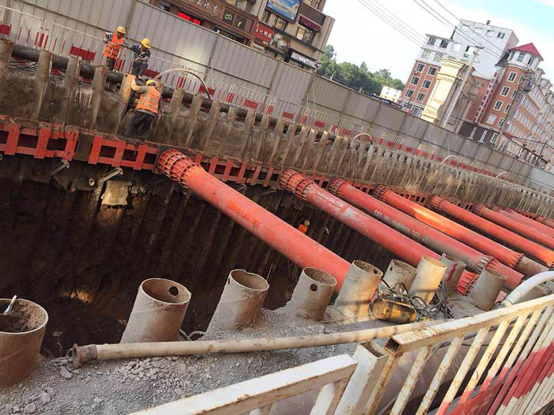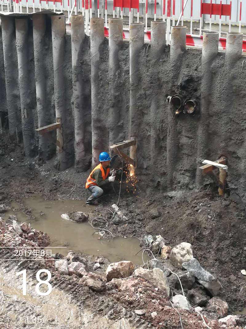 鋼支撐采用φ609*16鋼管撐,間距3米。鋼圍檁采用雙拼45b工字鋼。