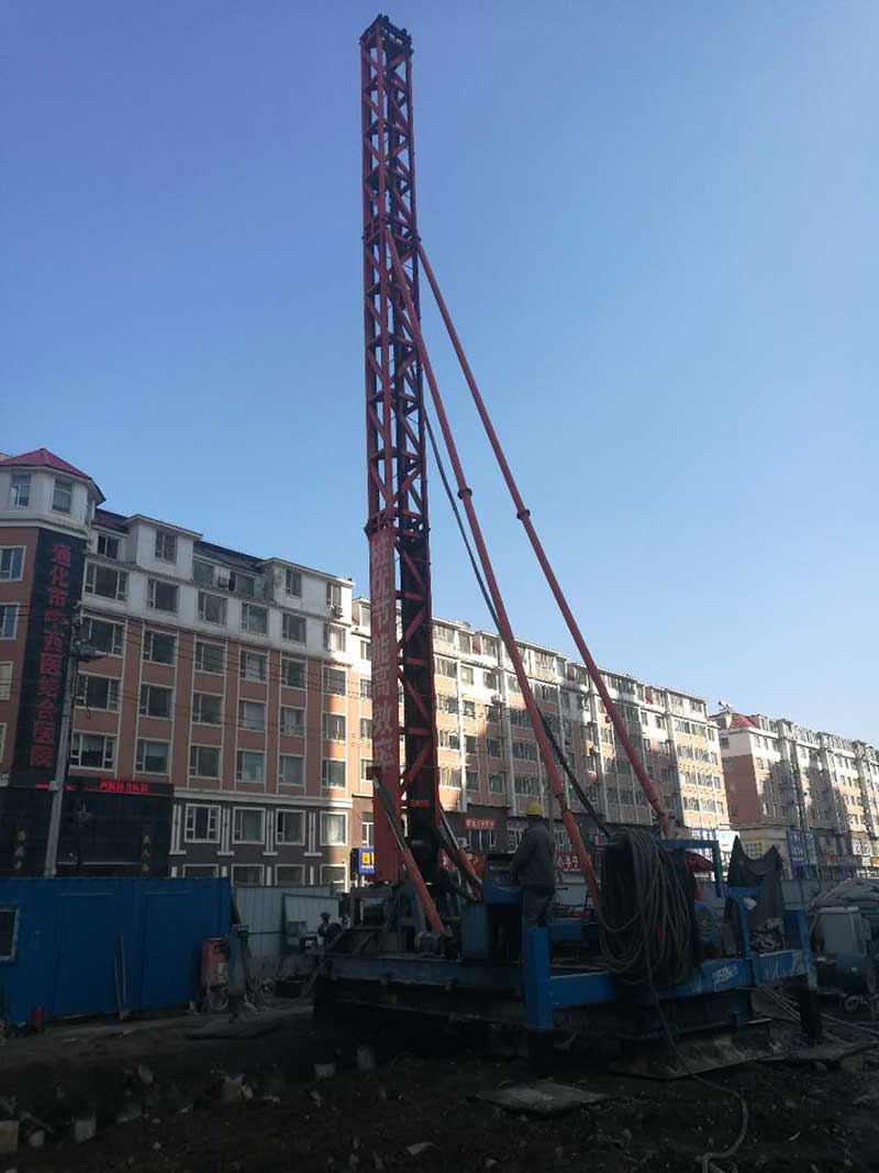 鋼管樁施工機(jī)械為長螺旋改裝的大型號潛孔錘配合30m³空壓機(jī)進(jìn)行施工。鋼管樁長12米,普通潛孔錘無法直接打入12米,需將12米鋼管先割斷再焊接,這樣工程進(jìn)度無法保證。長螺旋改裝后的大型號潛孔錘可直接施工12米鋼管,提高施工效率。